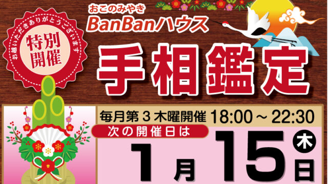 BanBanハウス手相鑑定 ■1月15日(木)「BanBanハウス」手相鑑定出演 2025年12月19日 手相110番(花岡正人) 埼玉県所沢市で人気のお好み焼き店 「西武新宿線 新所沢駅より徒歩5分」 お好み焼き「BanBanハウス」さん 毎月1回 …